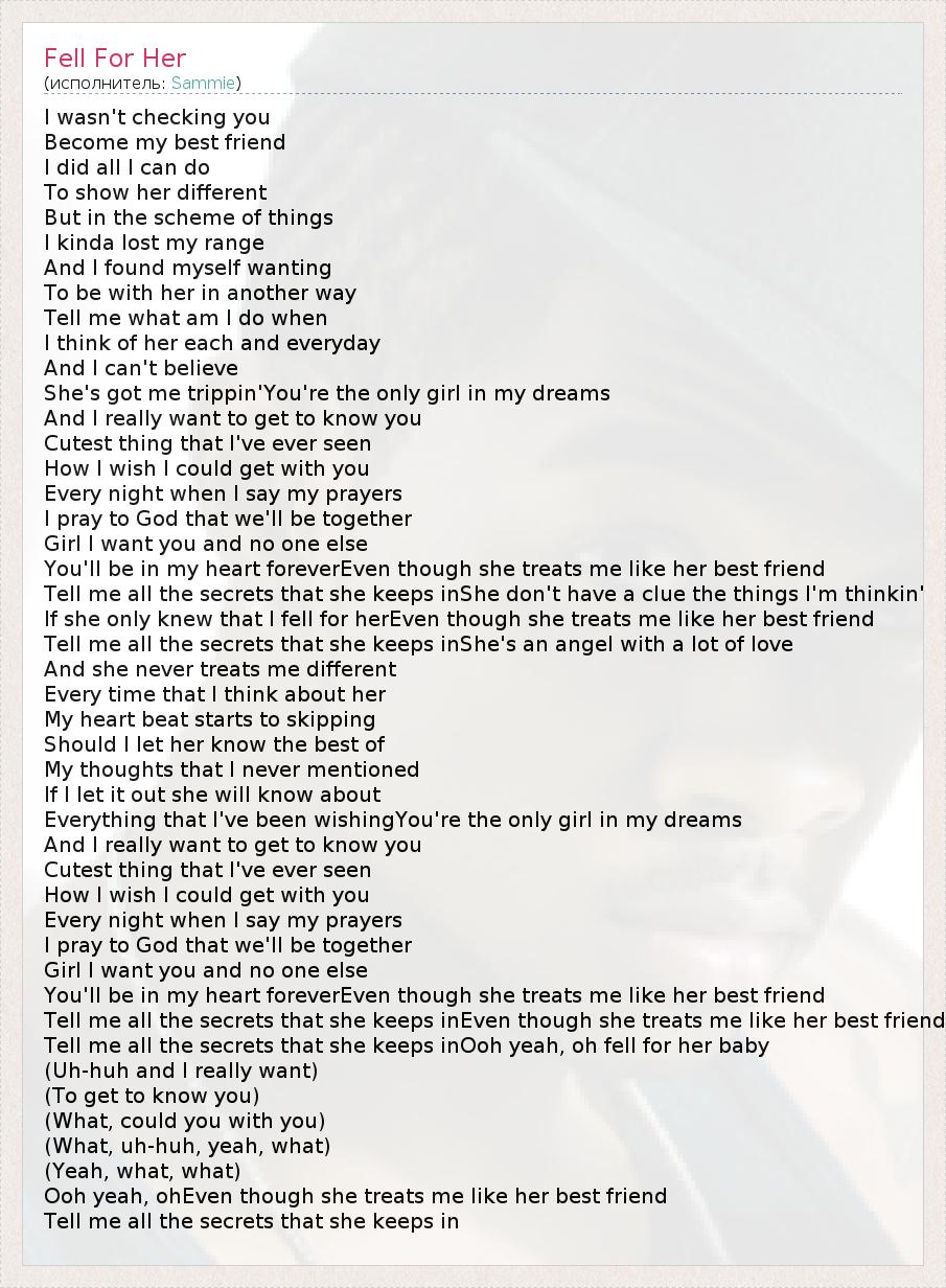 Tell me all the secrets that she keeps inEven though she treats me like her best friend
