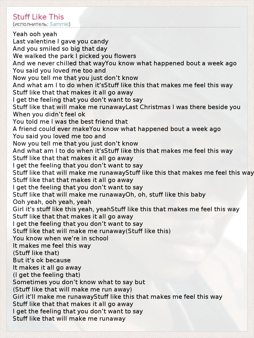А как ты думаешь, о чем песня "Stuff Like This" ?