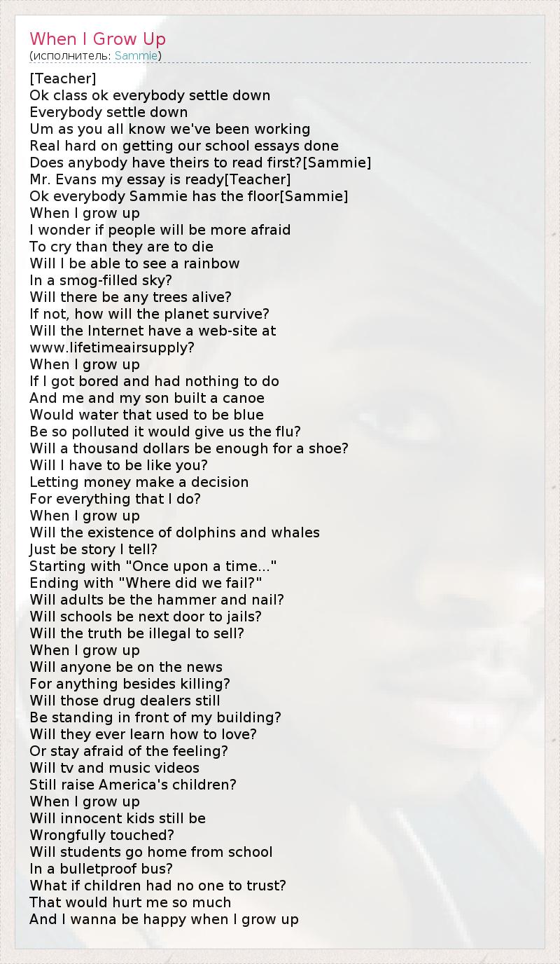 А как ты думаешь, о чем песня "When I Grow Up" ?