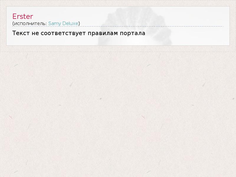 Это интересно:В 1997 году в Гамбурге, ФРГ, с выходом первой демо кассеты из серии Eimsbush Tapes начинается история одного из ярчайших немецкоговорящих МС Samy Deluxe. Эта кассета, разошедшаяся тиражом 10 тысяч экземпляров, содержала 8 песен группы Dynamite Deluxe, состоявшей из МС Сэмми Делюкса, диджея DJ Dynamite и битмейкера Tropf. Во многом эта кассета была большим прорывом в немецком хип-хопе и одновременно послужила началом... продолжение