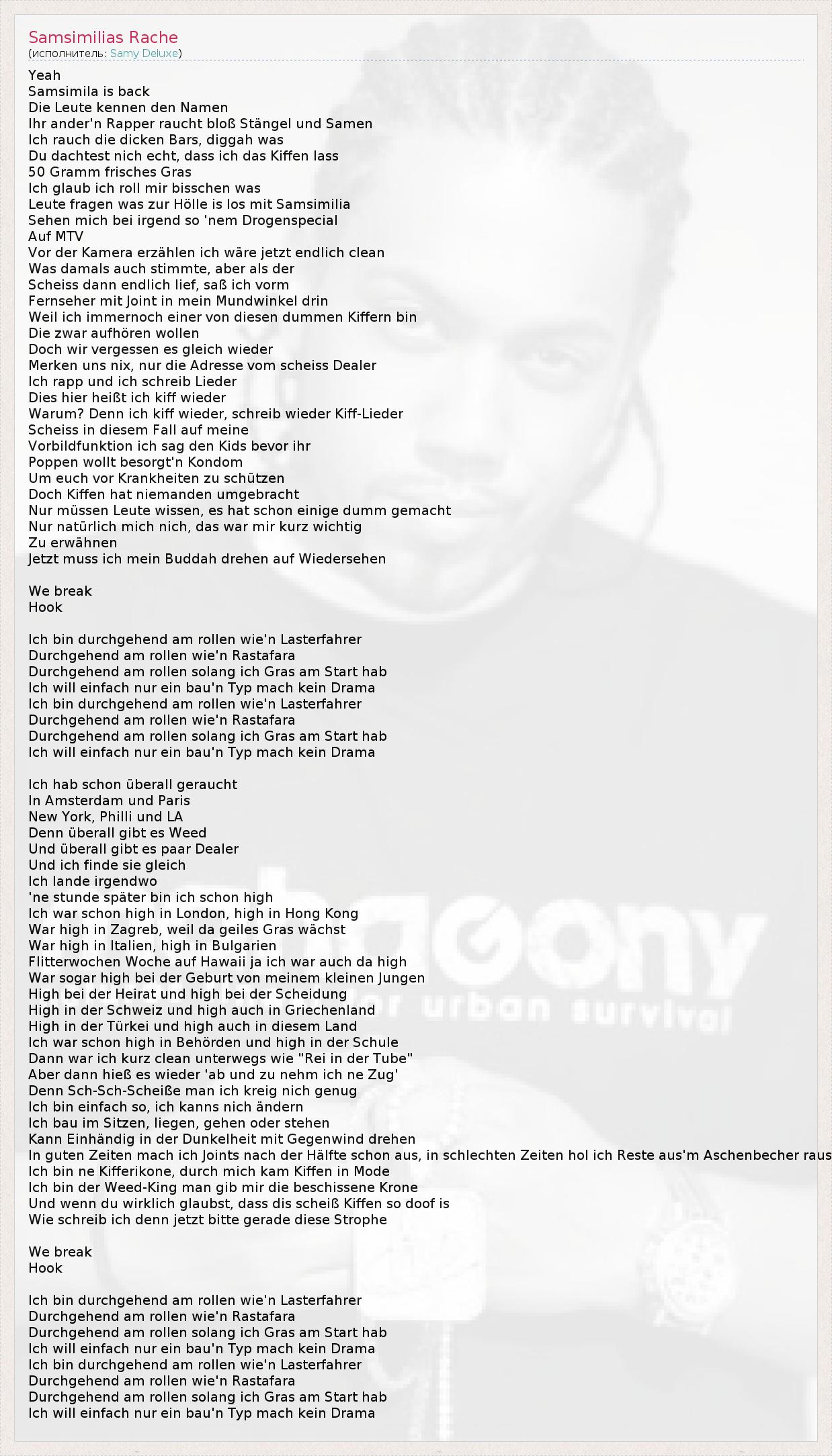 А как ты думаешь, о чем песня "Samsimilias Rache" ?