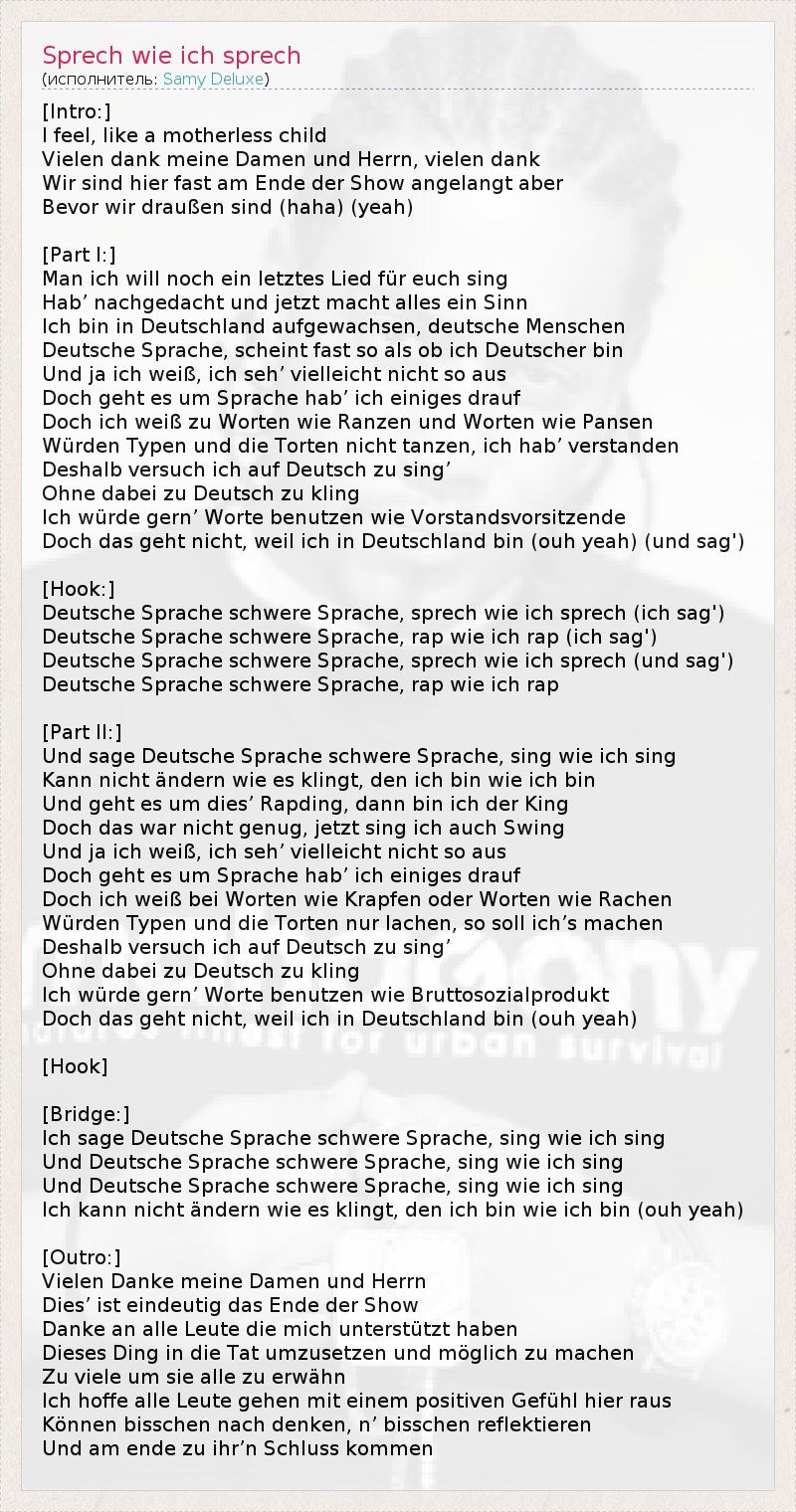 А как ты думаешь, о чем песня "Sprech wie ich sprech" ?
