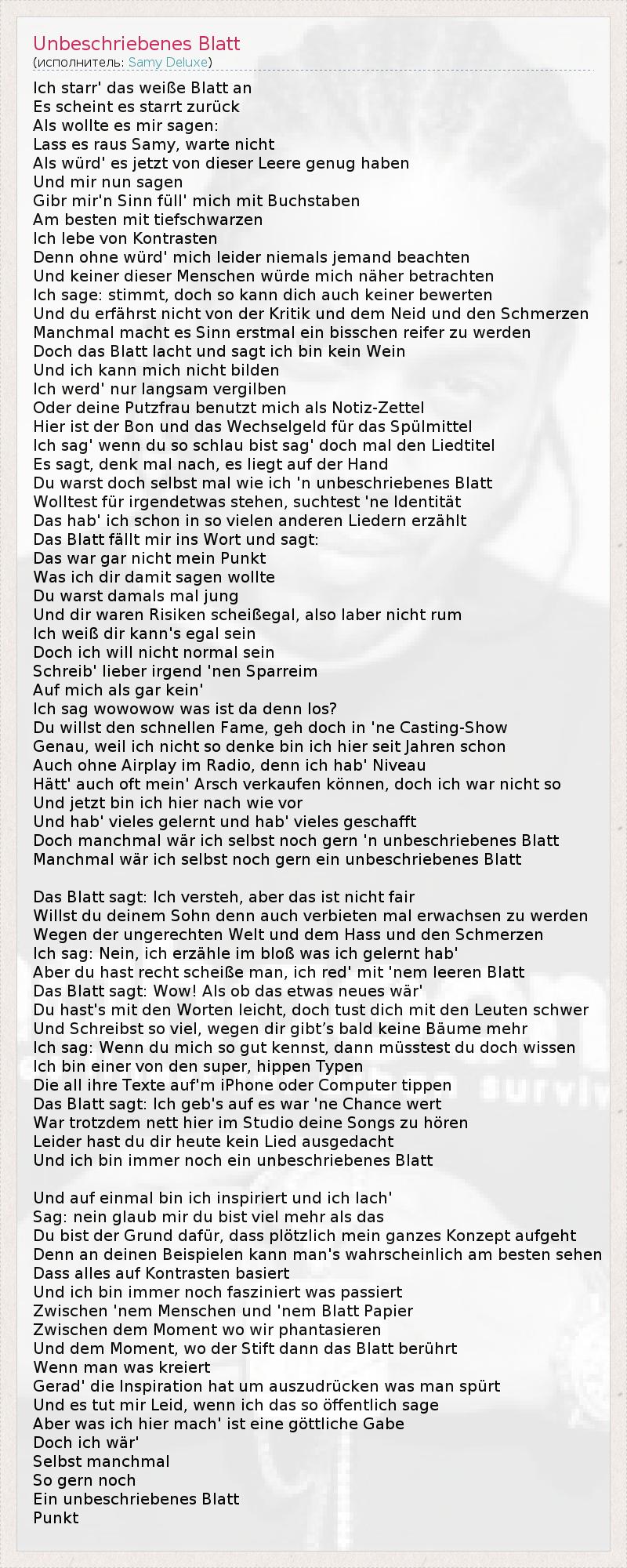 А как ты думаешь, о чем песня "Unbeschriebenes Blatt" ?