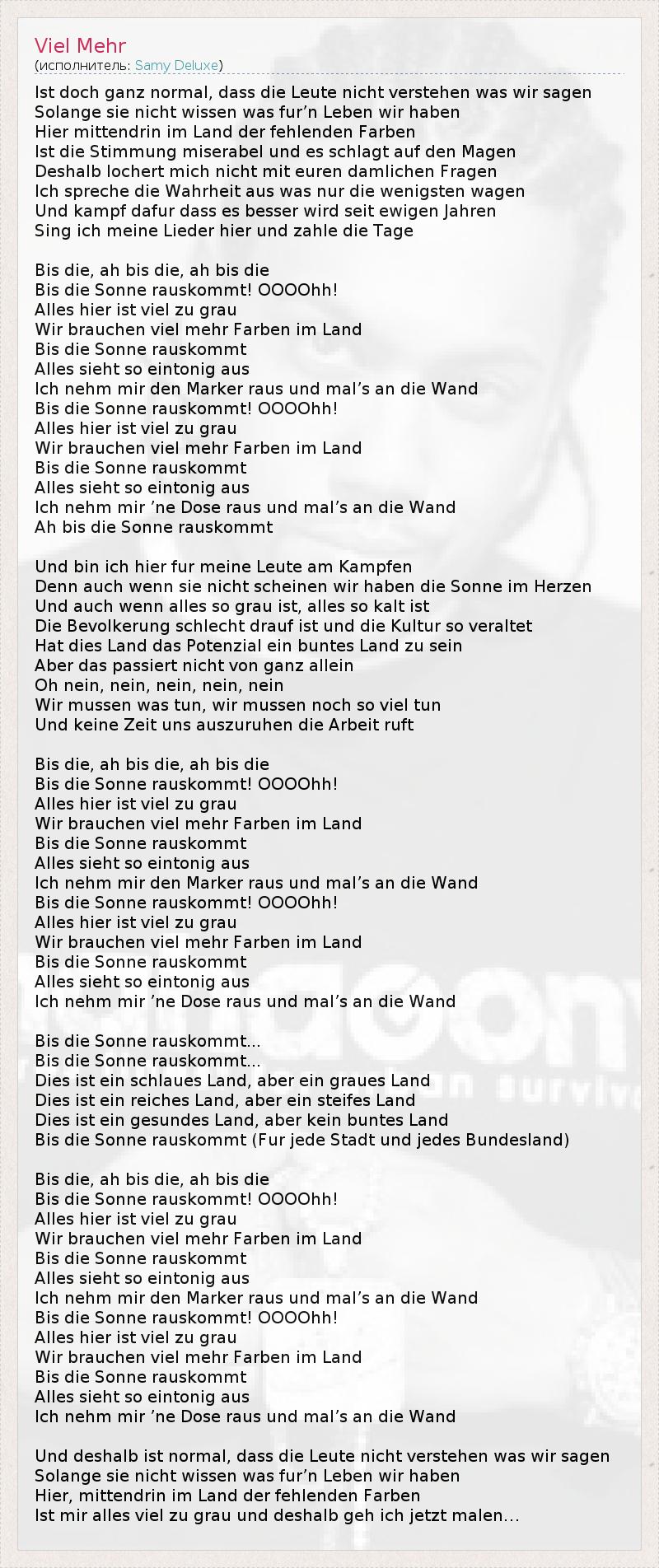 А как ты думаешь, о чем песня "Viel Mehr" ?
