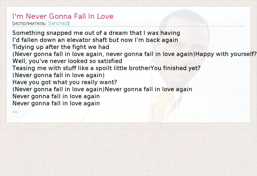 А как ты думаешь, о чем песня "I'm Never Gonna Fall In Love" ?