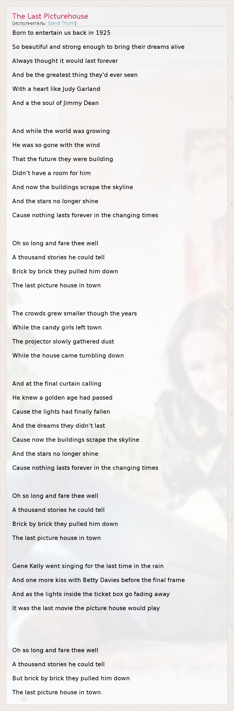 А как ты думаешь, о чем песня "The Last Picturehouse" ?
