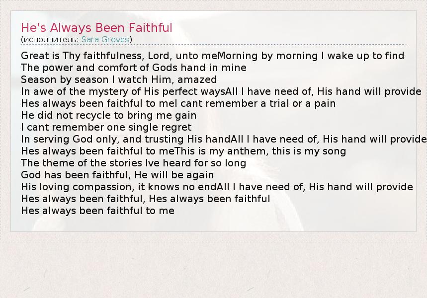 А как ты думаешь, о чем песня "He's Always Been Faithful" ?