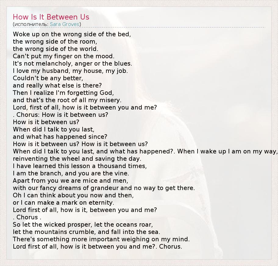 А как ты думаешь, о чем песня "How Is It Between Us" ?