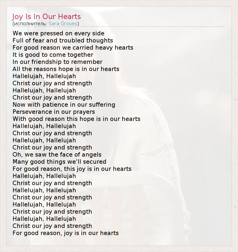 А как ты думаешь, о чем песня "Joy Is In Our Hearts" ?
