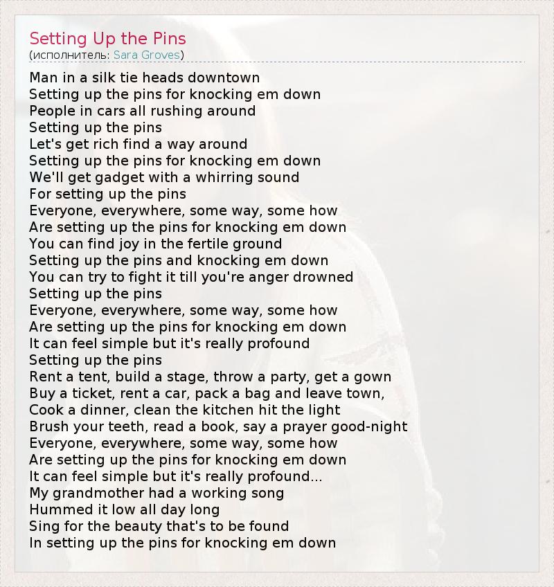 А как ты думаешь, о чем песня "Setting Up the Pins" ?