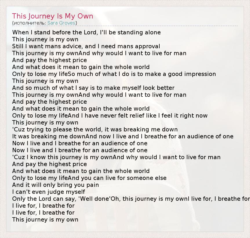 А как ты думаешь, о чем песня "This Journey Is My Own" ?