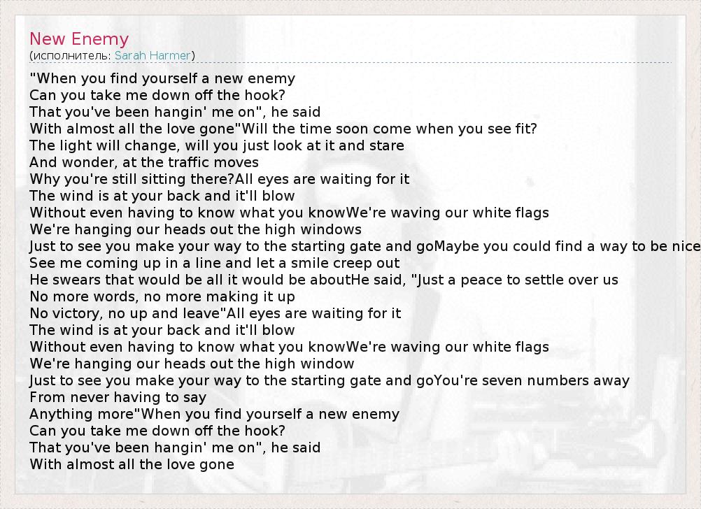 А как ты думаешь, о чем песня "New Enemy" ?