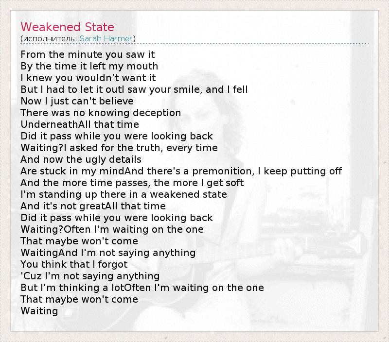 Это интересно:Сара из канадской тусовки людей с гитарами, у нее слегка ассиметричное лицо и огромные серо-голубые (или серо-зеленые?) глаза. Она родилась в Берлингтоне, на берегах озера Онтарио. Ее первое музыкальное впечатление в жизни - концерт Tragically Hip, который она посетила вместе со своей старшей сестрой. Уже будучи 17-летней студенткой начала свою карьеру в группе The Saddletramps. В 1998 году она записала... продолжение