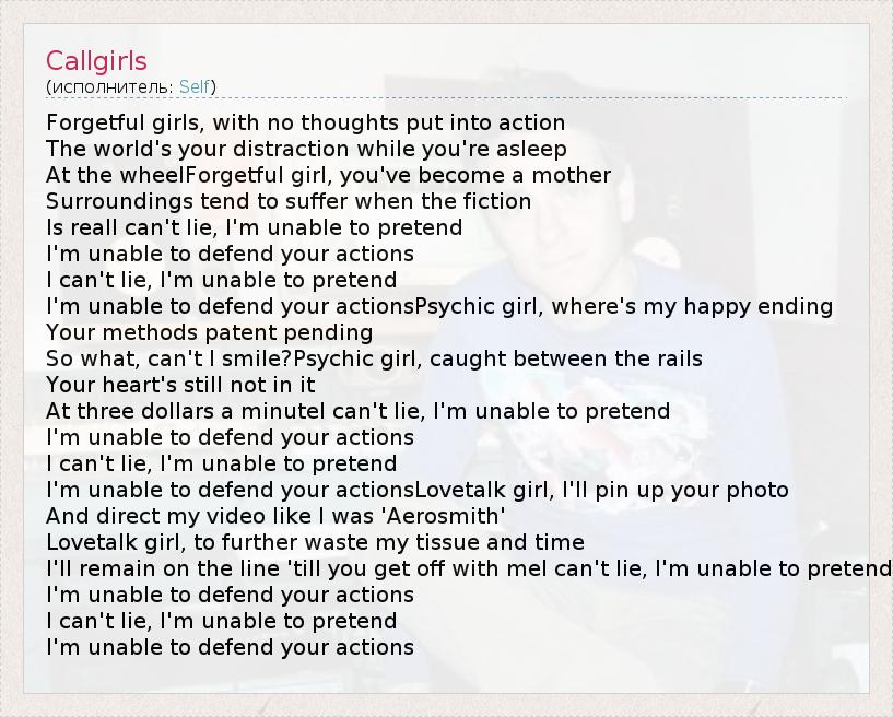 А как ты думаешь, о чем песня "Callgirls" ?