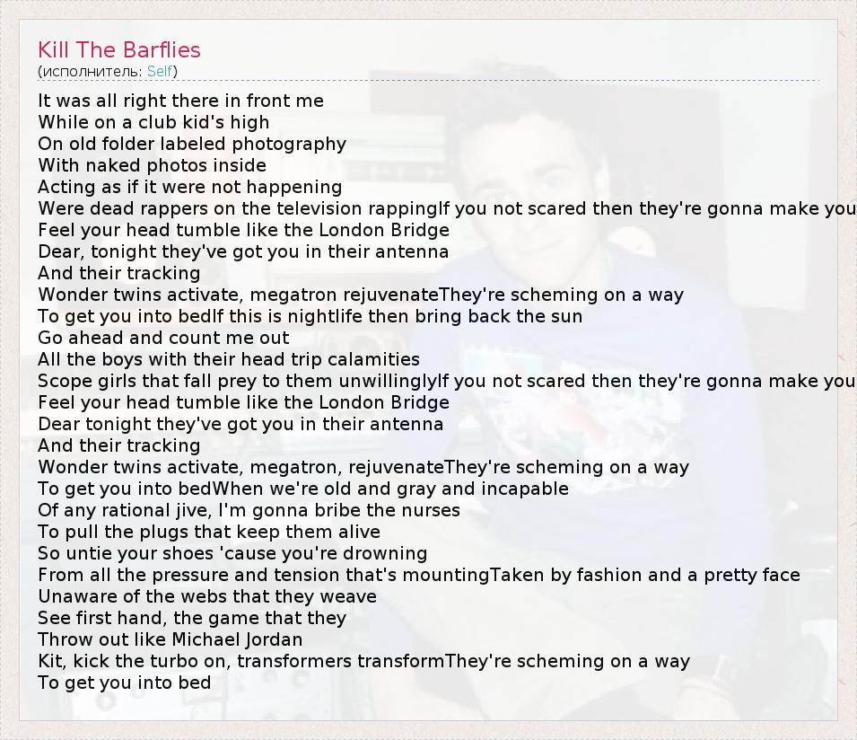 А как ты думаешь, о чем песня "Kill The Barflies" ?