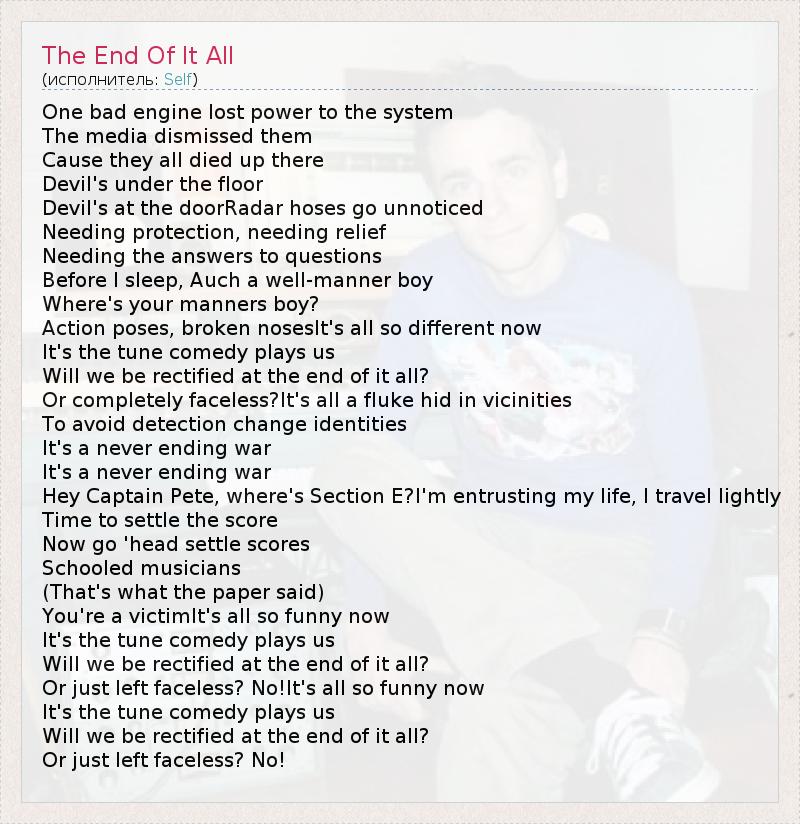 А как ты думаешь, о чем песня "The End Of It All" ?