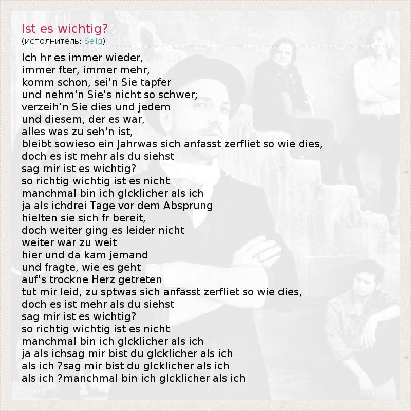 А как ты думаешь, о чем песня "Ist es wichtig?" ?