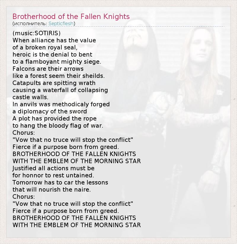 А как ты думаешь, о чем песня "Brotherhood of the Fallen Knights" ?