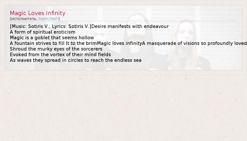 А как ты думаешь, о чем песня "Magic Loves Infinity" ?