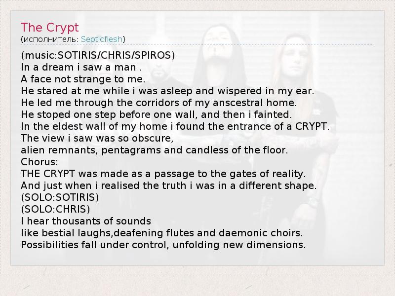 А как ты думаешь, о чем песня "The Crypt" ?
