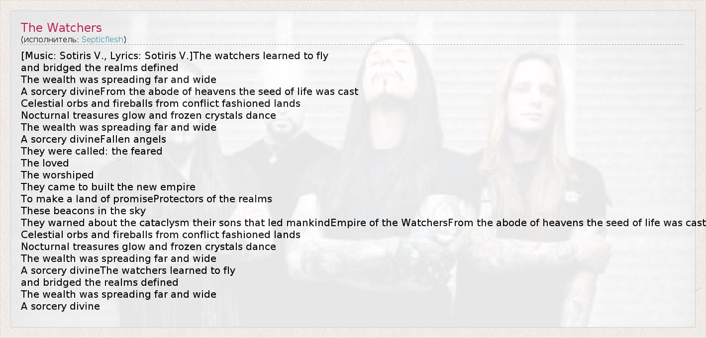 [Music: Sotiris V., Lyrics: Sotiris V.]The watchers learned to fly