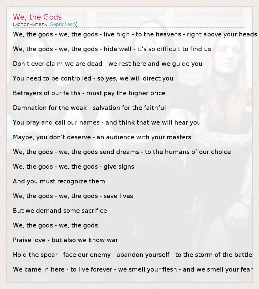 А как ты думаешь, о чем песня "We, the Gods" ?