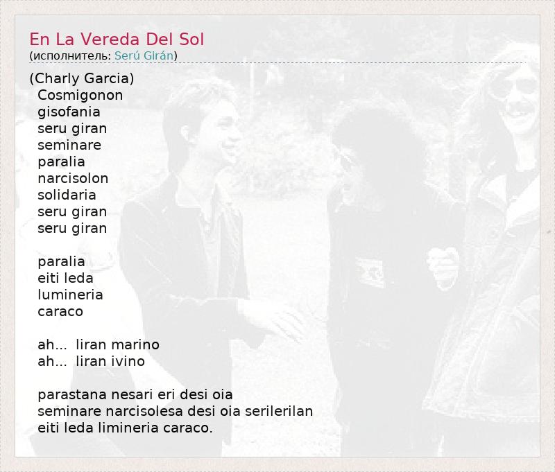 (Charly Garcia) Cosmigonon gisofania seru giran seminare paralia narcisolon solidaria seru giran seru giran paralia eiti leda lumineria caraco ah... liran marino ah... liran ivino parastana nesari eri desi oia seminare narcisolesa desi oia serilerilan eiti leda limineria caraco.