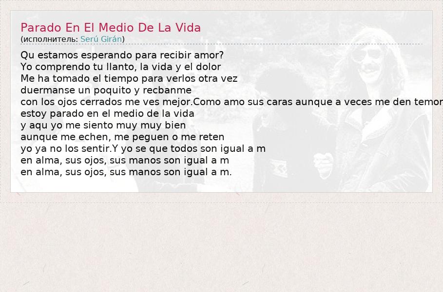 А как ты думаешь, о чем песня "Parado En El Medio De La Vida" ?