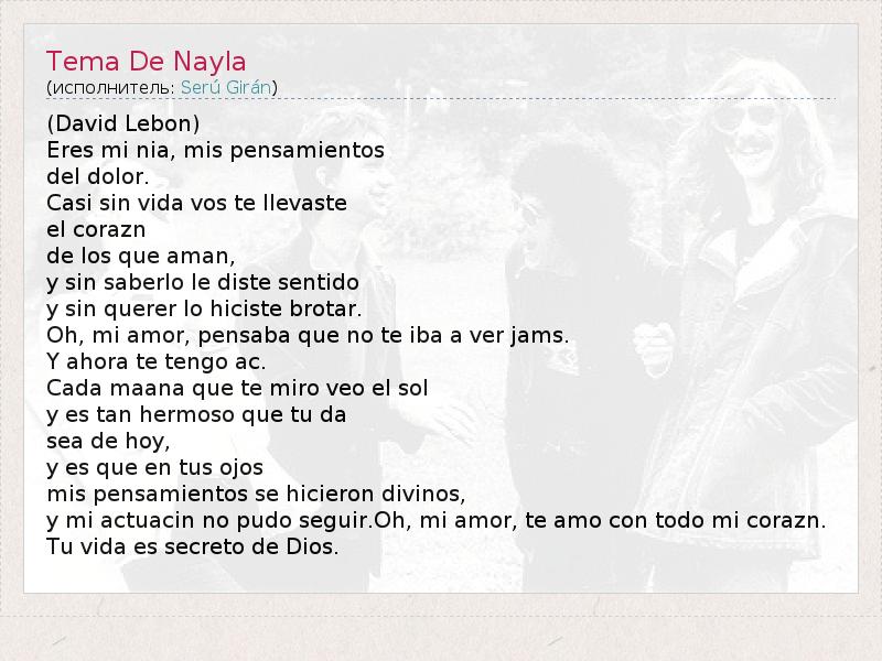 А как ты думаешь, о чем песня "Tema De Nayla" ?
