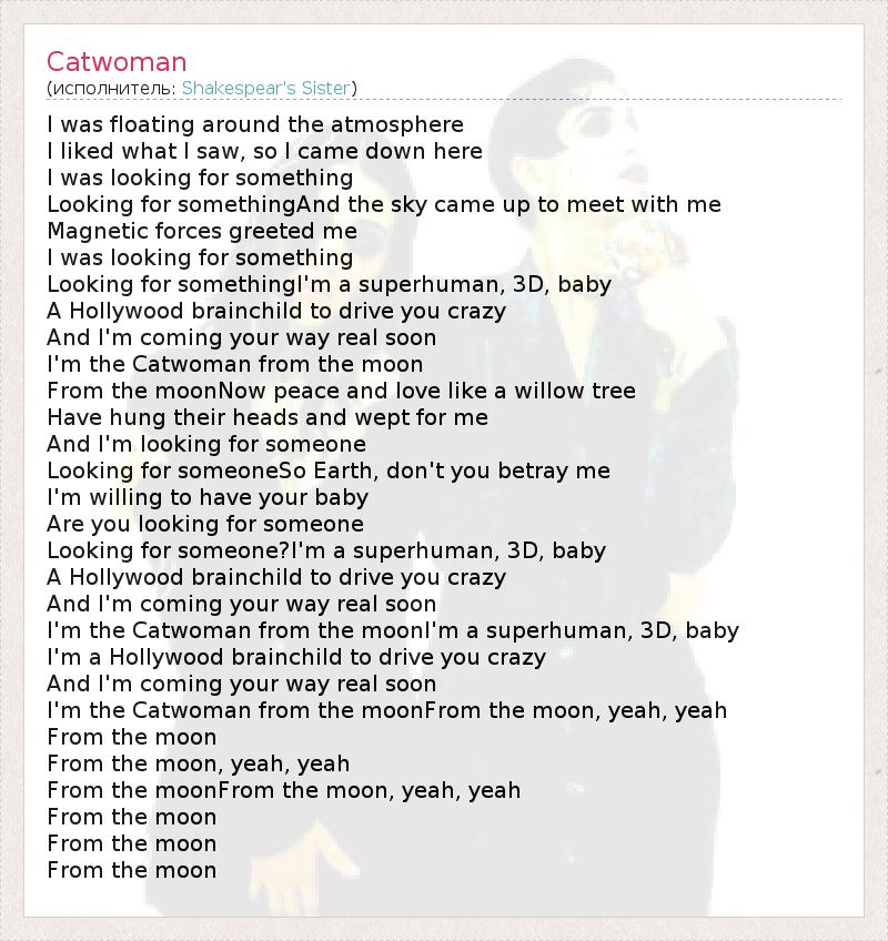 I'm the Catwoman from the moonI'm a superhuman, 3D, baby