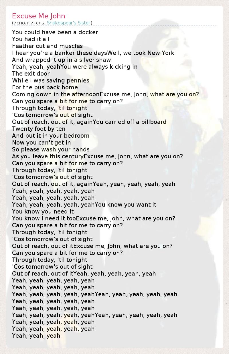А как ты думаешь, о чем песня "Excuse Me John" ?