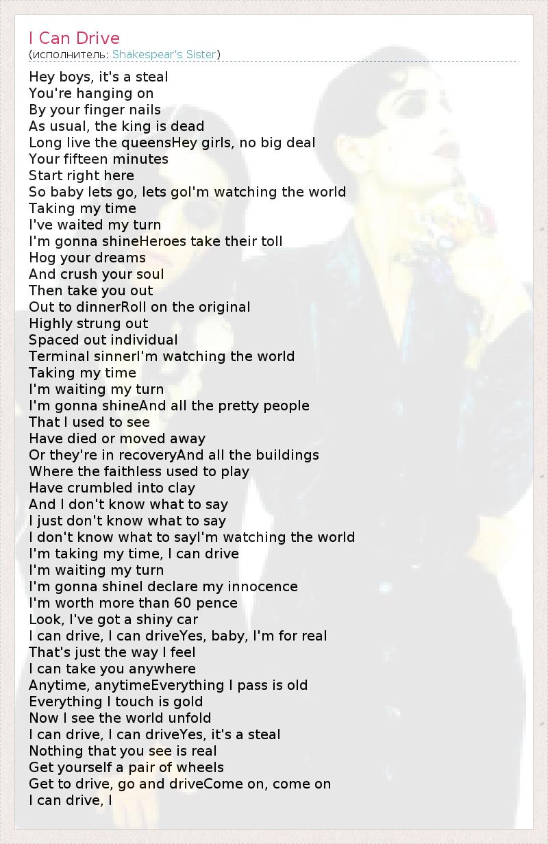 А как ты думаешь, о чем песня "I Can Drive" ?