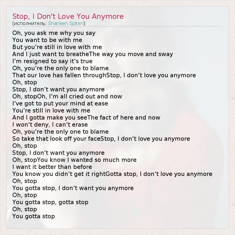 А как ты думаешь, о чем песня "Stop, I Don't Love You Anymore" ?