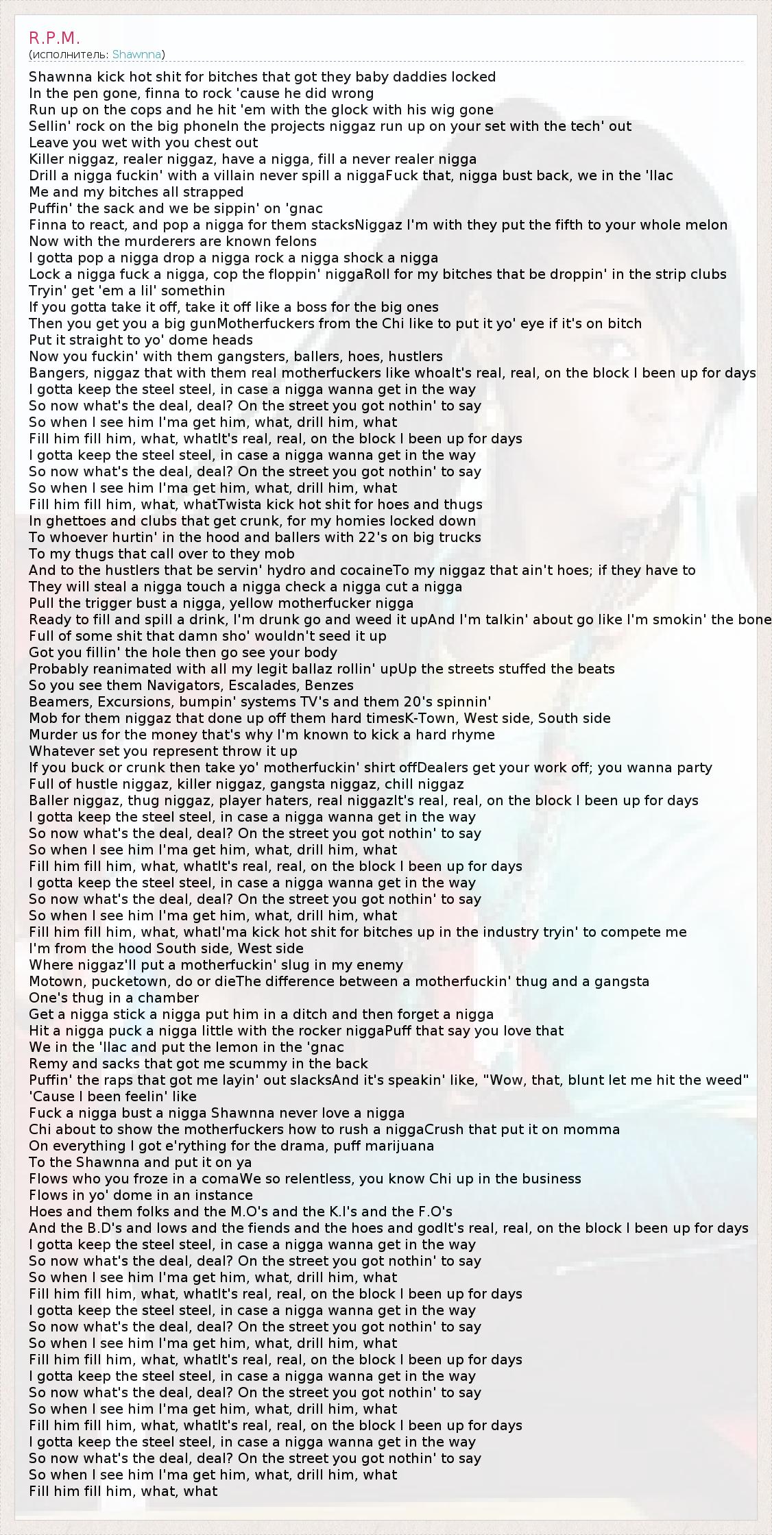 I gotta pop a nigga drop a nigga rock a nigga shock a nigga
