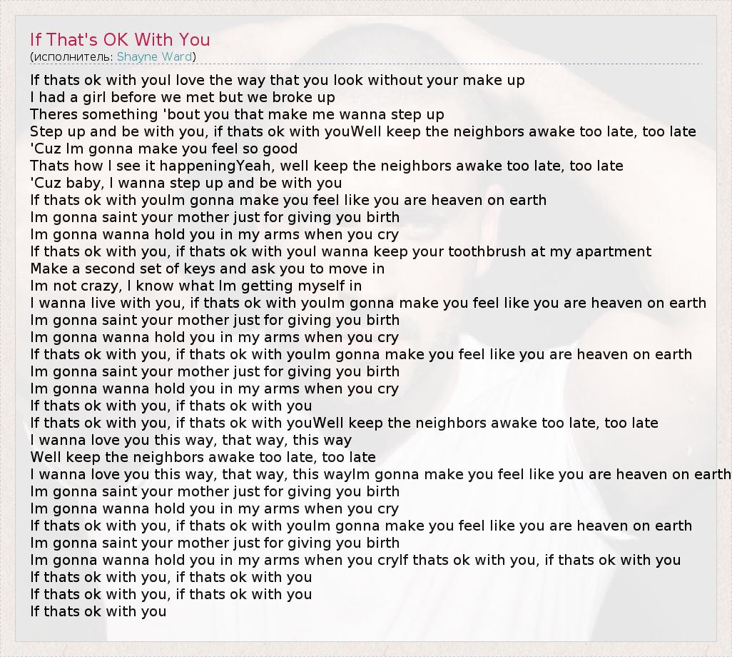 Im gonna wanna hold you in my arms when you cryIf thats ok with you, if thats ok with you