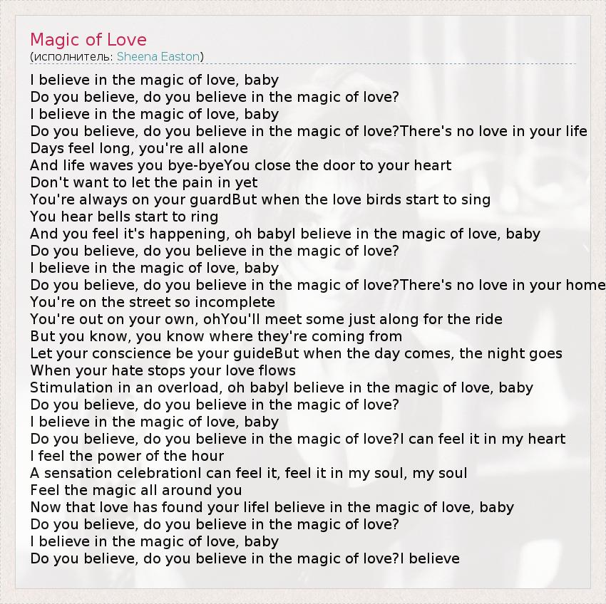 А как ты думаешь, о чем песня "Magic of Love" ?
