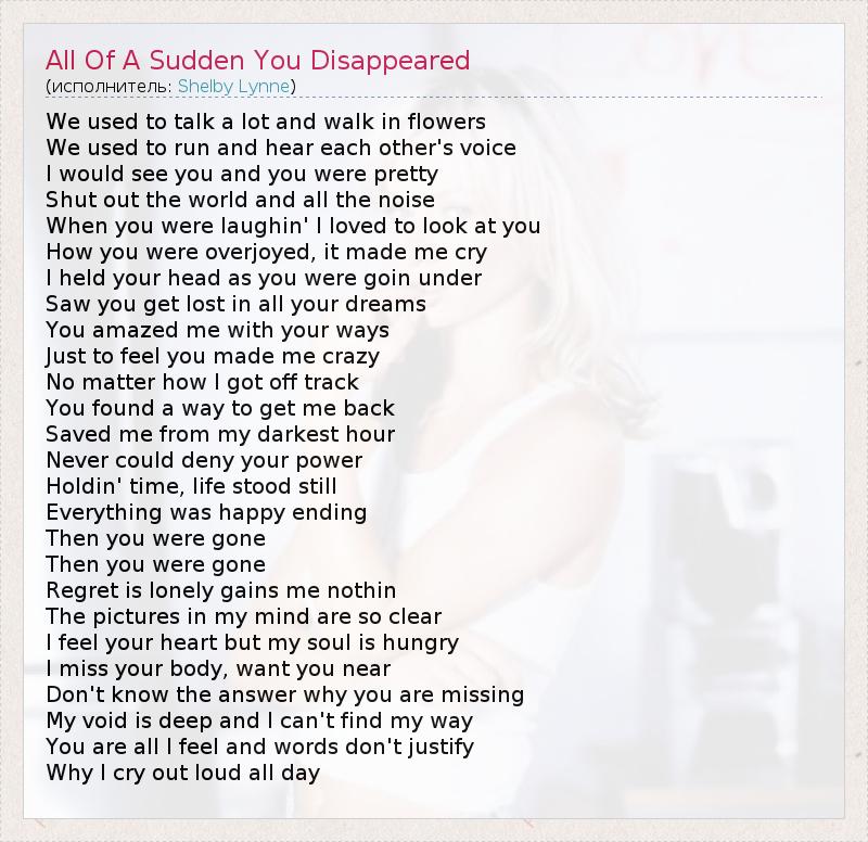 А как ты думаешь, о чем песня "All Of A Sudden You Disappeared" ?