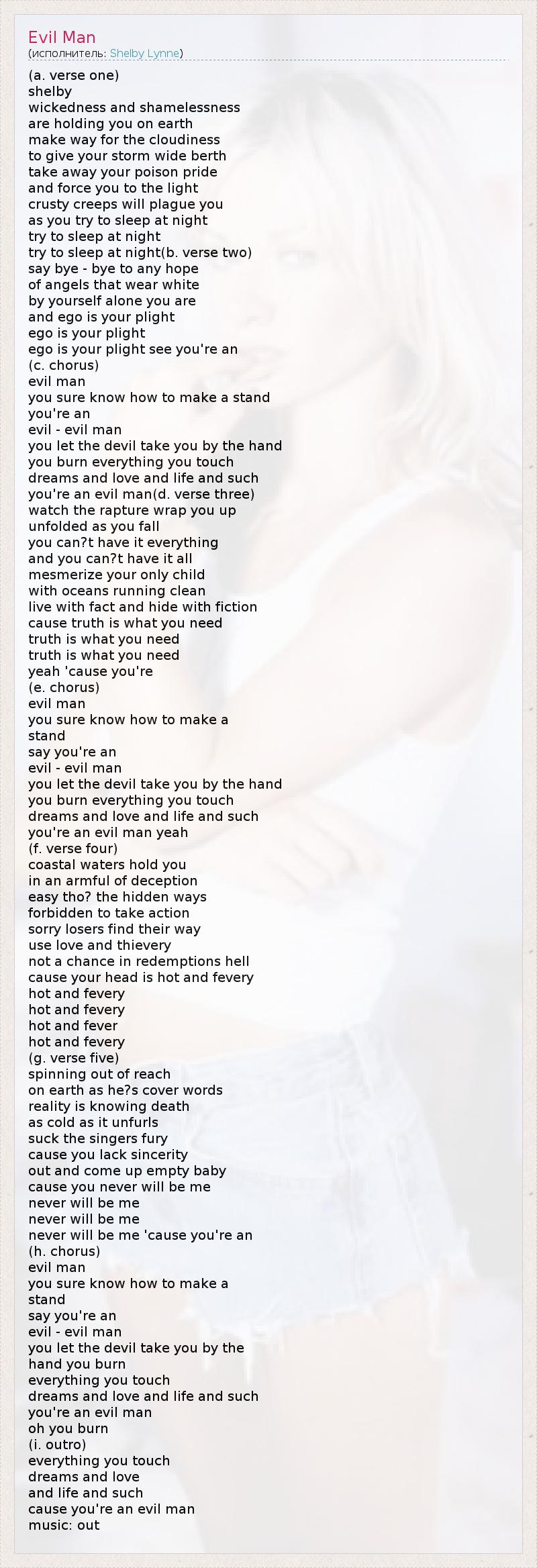 А как ты думаешь, о чем песня "Evil Man" ?