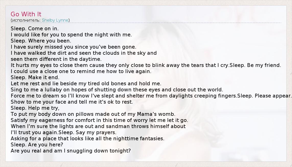 Sing to me a lullaby on hopes of shutting down these eyes and close out the world.