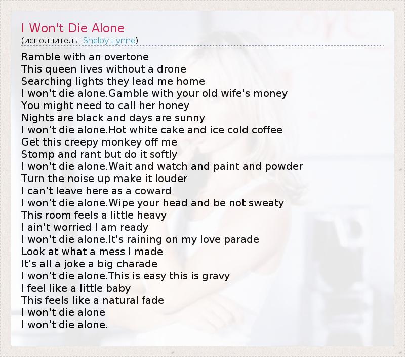 А как ты думаешь, о чем песня "I Won't Die Alone" ?