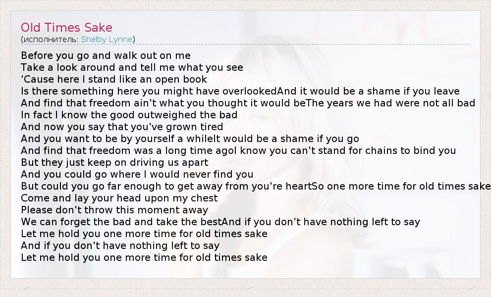 А как ты думаешь, о чем песня "Old Times Sake" ?