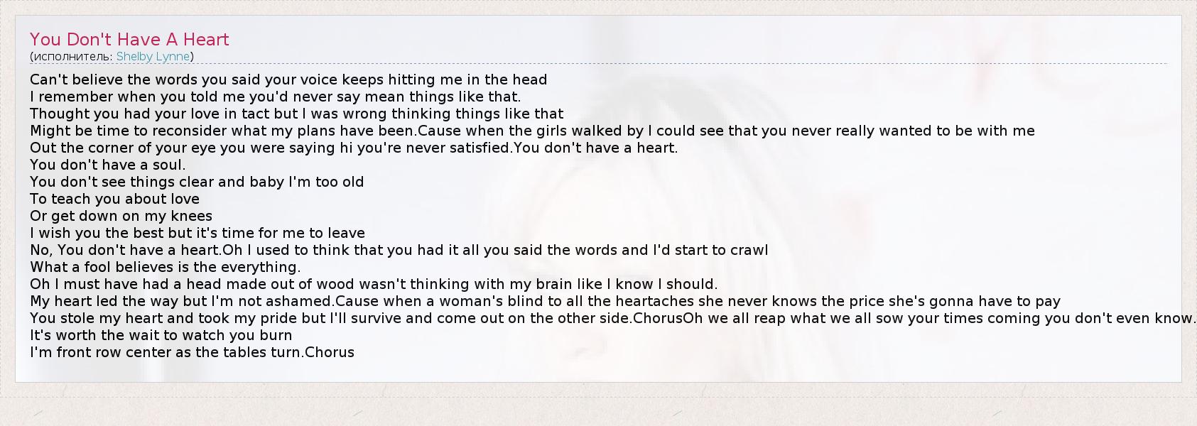 А как ты думаешь, о чем песня "You Don't Have A Heart" ?