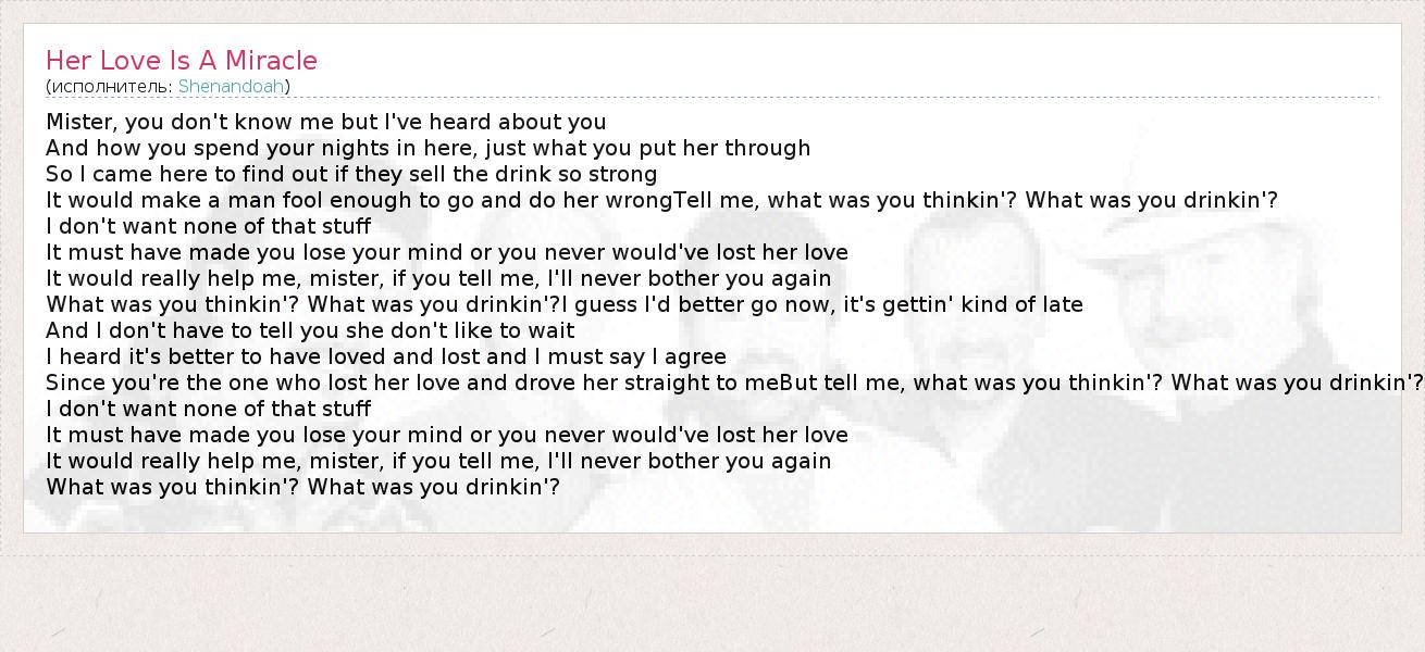 А как ты думаешь, о чем песня "Her Love Is A Miracle" ?