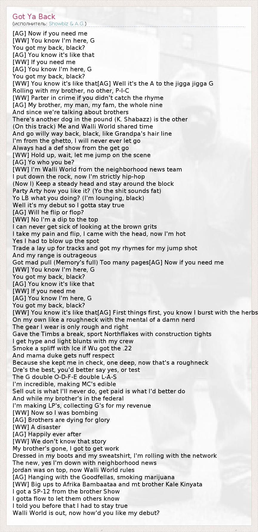 А как ты думаешь, о чем песня "Got Ya Back" ?
