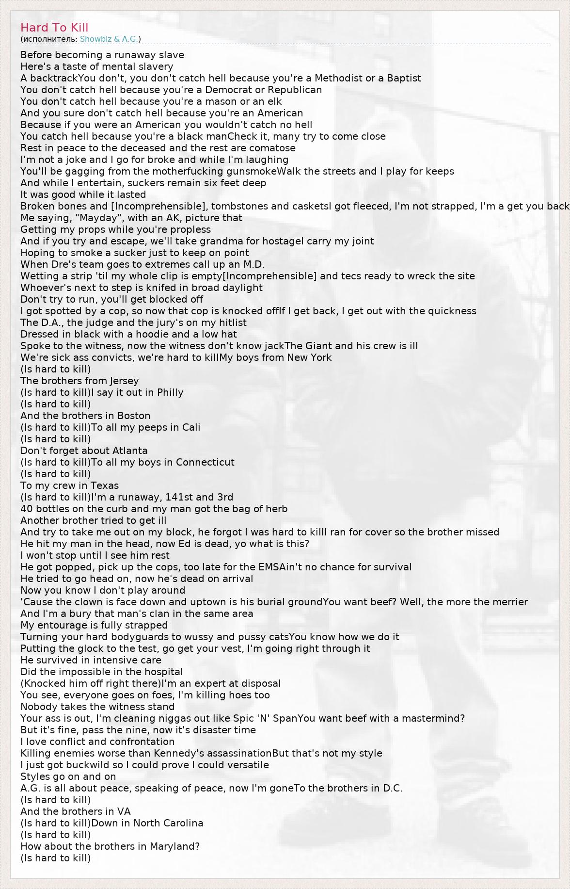 А как ты думаешь, о чем песня "Hard To Kill" ?