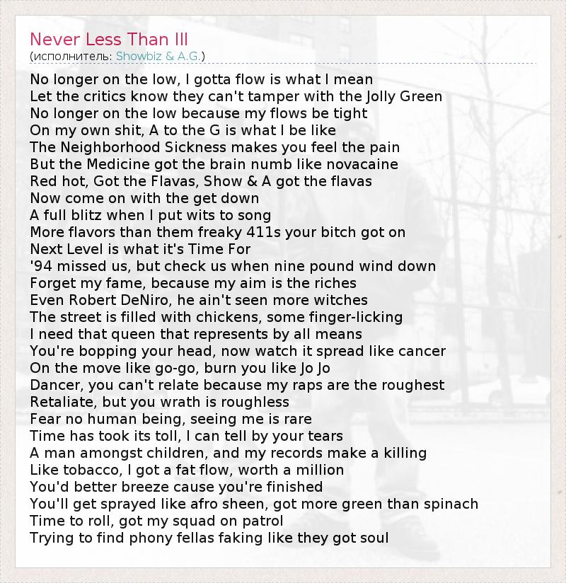 А как ты думаешь, о чем песня "Never Less Than Ill" ?