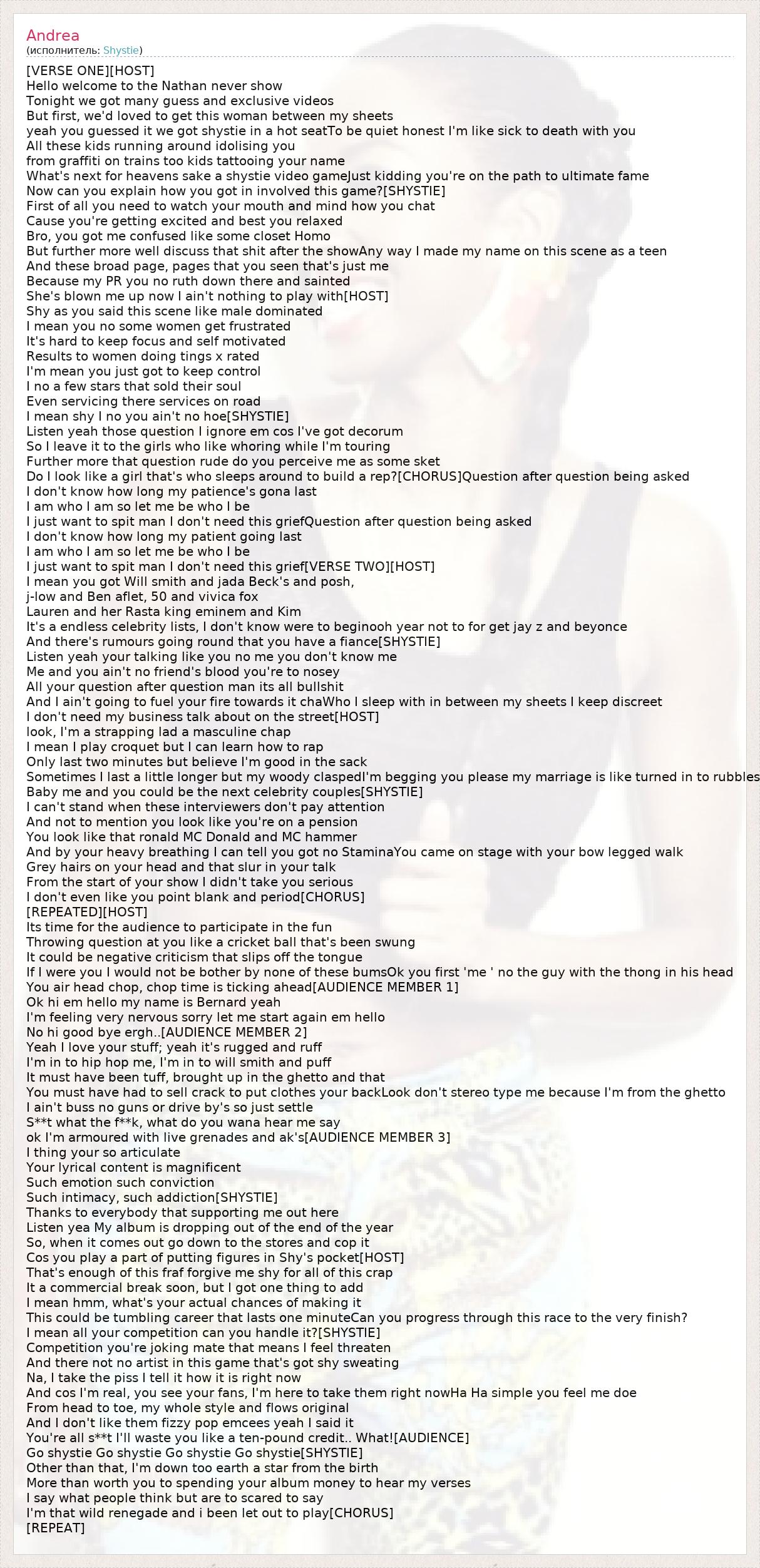 I mean shy I no you ain't no hoe[SHYSTIE]