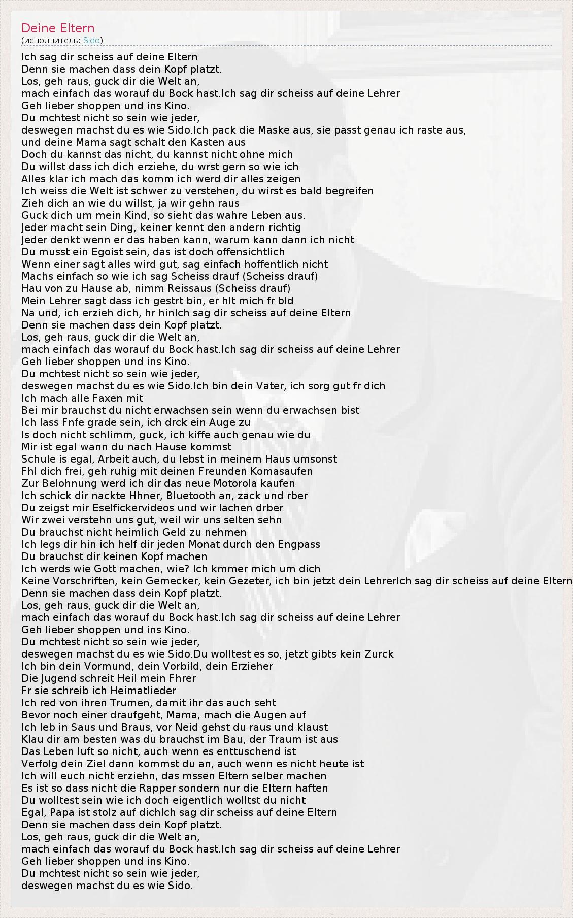 А как ты думаешь, о чем песня "Deine Eltern" ?