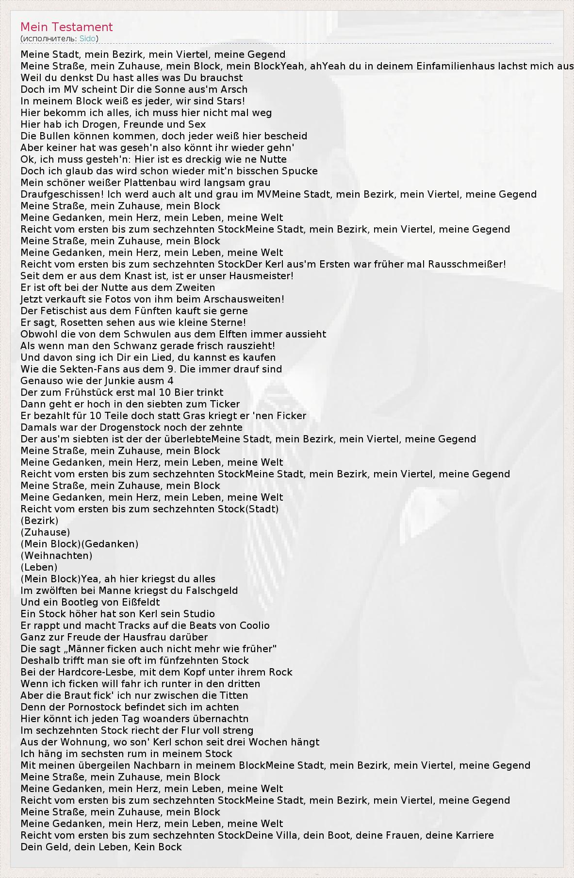 А как ты думаешь, о чем песня "Mein Testament" ?