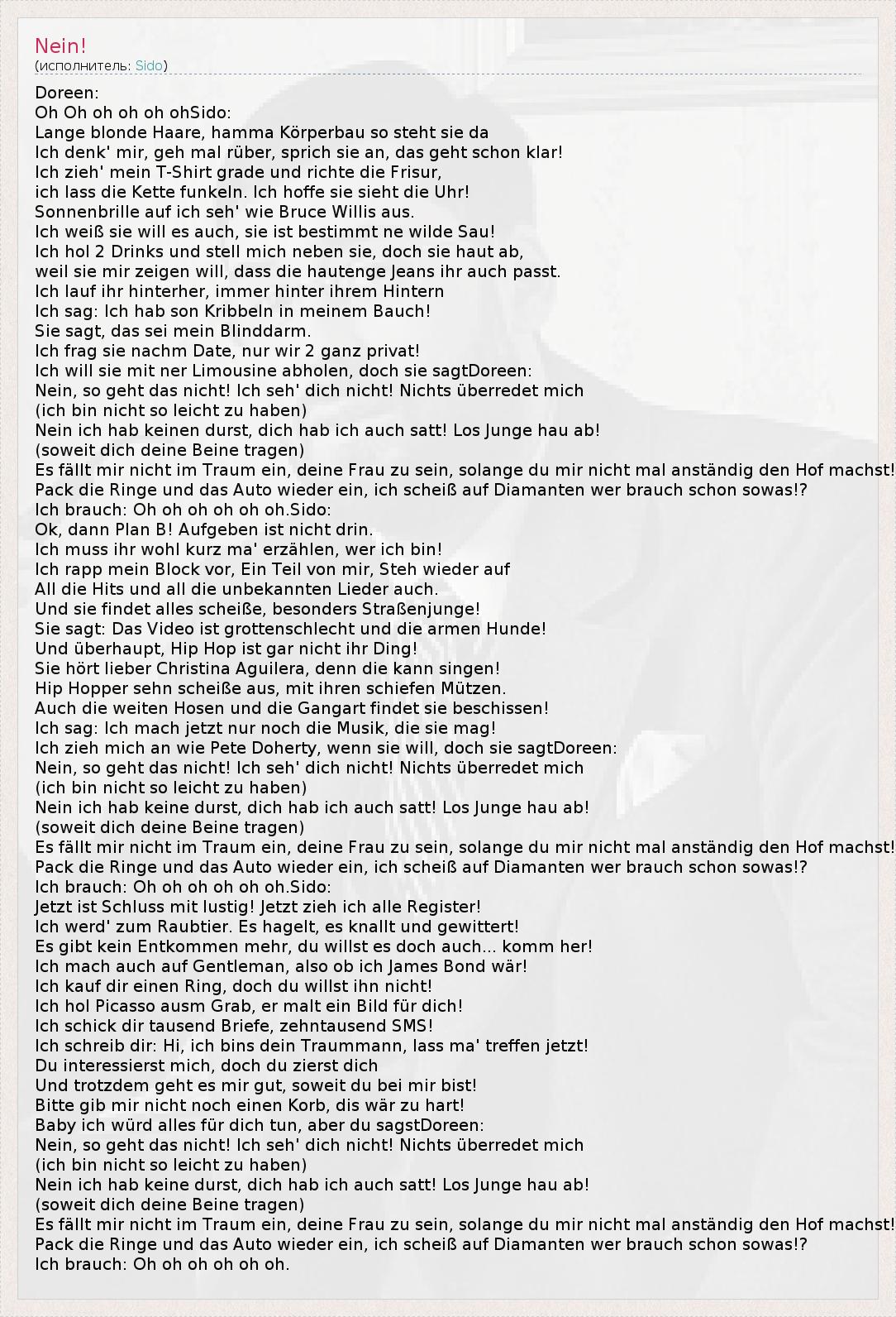 Ich brauch: Oh oh oh oh oh oh.Sido: